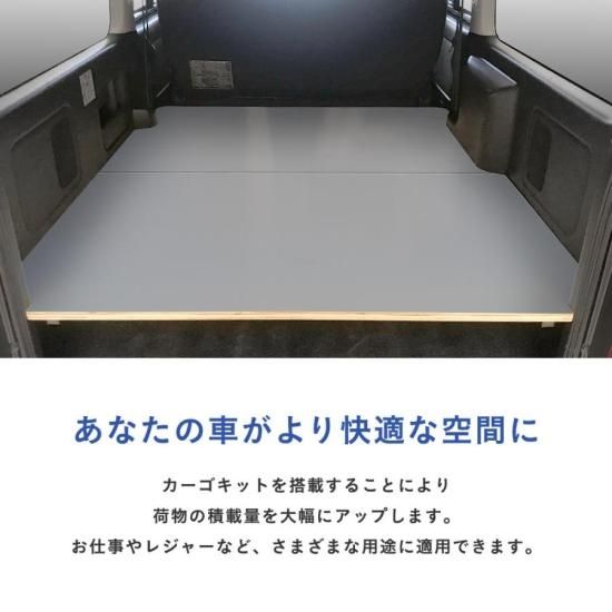 | ポイント | バンライフをもっと快適に。 積載力アップのカーゴキットで、荷物の積み降ろしをスムーズに。 ・板厚24mmの安心感 ―― 頼れる耐久性 ・ハイエース専用設計 ―― 国内自社工場製造の日本製 ・車両形状にぴったりフィット ―― 安定した積載スペース 選べる2サイズ展開。 フロアパネルと同時装着で、さらに広がる可能性。 もっと便利に、もっと魅力的に。バンライフの新たな選択肢。 |