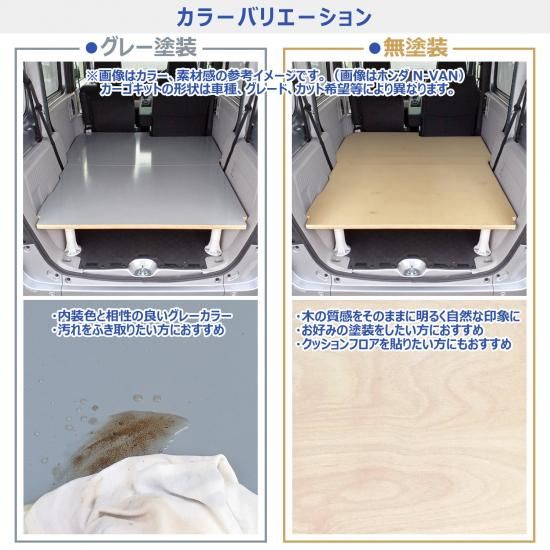 ![]() | クッションフロア貼り プロダックス製フロアパネルや、カーゴキットにお好みのクッションフロアを貼るオプション。 |