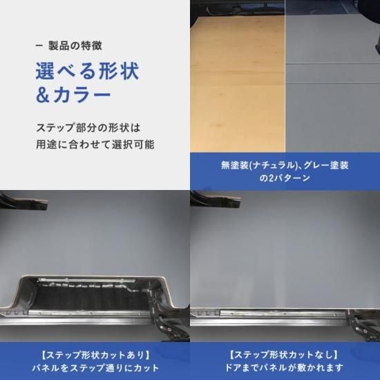 - ステップ形状カットなし:ドアまでパネルが敷かれます