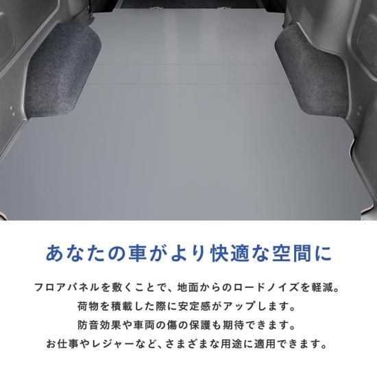 | 取付方法 | 取付は荷室へフロアパネルを置き、パネル同士を連結するだけでとても簡単です。 短時間で取付が可能です。(取付説明書を同封いたします。) |