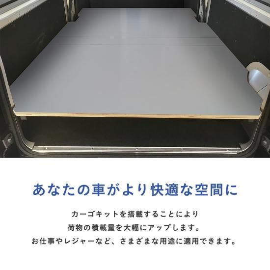 ポイント | バンライフをもっと快適に。 積載力アップのカーゴキットで、荷物の積み降ろしをスムーズに。 ・板厚24mmの安心感 —— 頼れる耐久性 ・ハイエース専用設計 —— 国内自社工場製造の日本製 ・車両形状にぴったりフィット —— 安定した積載スペース 選べる2サイズ展開。 フロアパネルと同時装着で、さらに広がる可能性。 もっと便利に、もっと魅力的に。バンライフの新たな選択肢。 |
