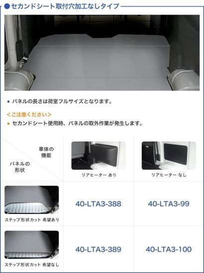 | 商品コード | ・40-LTA3-(GR/UN)-388(2ndシート加工穴無し×ステップ形状カット希望あり×リアヒーター有り) |