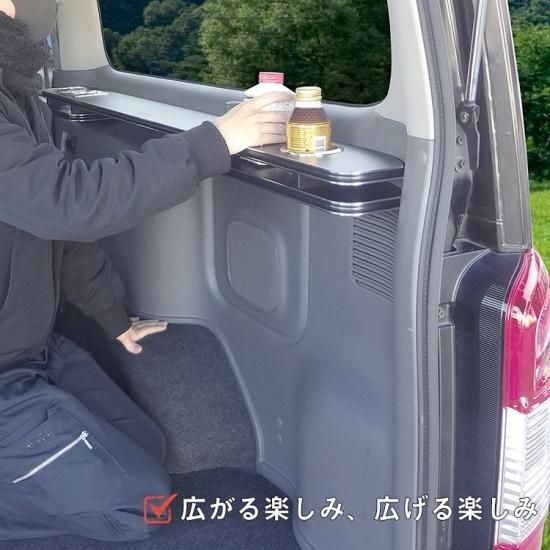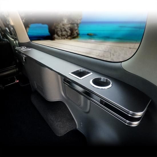 日産 E26 NV350 キャラバン プレミアムGX リヤサイドテーブル | 運転席 助手席 リアサイドテーブル サイドテーブル 荷室テーブル コンソール リヤテーブル リアテーブル 後部座席 カウンター ドリンクホルダー 収納 内装 インテリア 車検対応 カスタム 改造 棚 バン 車中泊