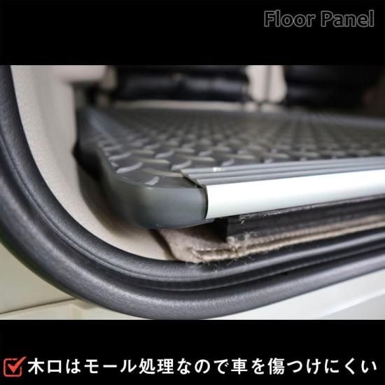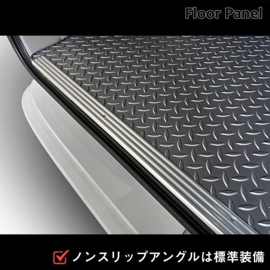 | 商品について | 荷室全面に敷く板です。荷台をフラットにすることにより、積み降ろしが便利になります。 ラゲッジトレー下段にも装着可能なので、棚としても利用でき、荷室の使い勝手が増します。 バックドアを開けた状態であればラゲッジトレー上段にも装着可能ですが、そのままの状態でバックドアを閉めると車両や商品が破損します。ご注意ください。 後部にはノンスリップアングルを標準装備。パネルの周囲はモール加工されている、ワンランク上のフロアパネルです。 |