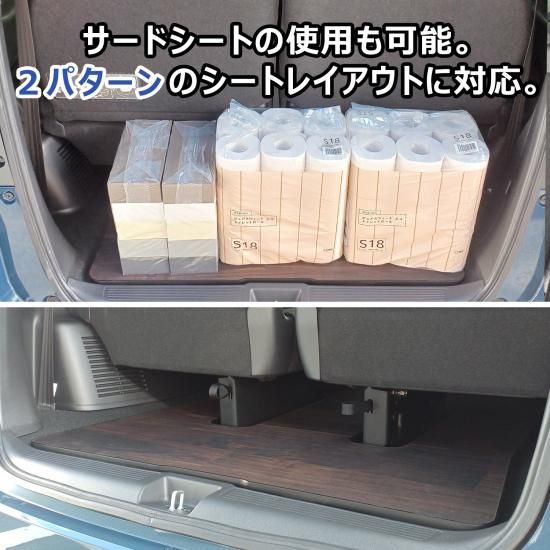 | 取付方法 | 1、リアハッチを開けて、サードシートを跳ね上げてください。 2、車両の床形状い合わせてフロアパネルを敷いてください。 ・サードシートを使う際は、そのままシートを降ろしてください。 (詳しくは取付説明書をご確認ください) |