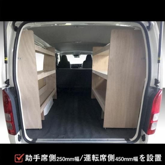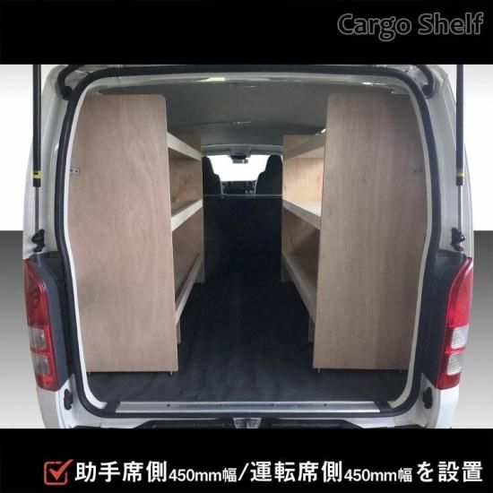 200系 ハイエース DX 標準ボディ カーゴシェルフ 450mm幅 | トヨタ ロング 木製 棚 荷室 収納 内装 カスタム 改造 ラック 職人 塗装 キット トランポ 200-HD103-UN