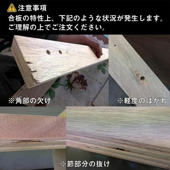 | 製品について | 本製品は組立式となります。 ※合板の特性上、軽度の角部の欠け・はがれ・節部分の隙間等が発生します。画像の注意事項を必ずご確認いただき、ご了承の上でご注文ください。 <同時装着品について> <商品の不具合の場合> |