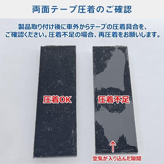 | 取付方法 | 1.両面テープを貼らずに取付位置を確認してください。 2.ガラスクリーナー等でウィンドウパネルの取り付け面、ウィンドウパネル本体の汚れを取り除いてください。 3.ウィンドウパネル本体に両面テープを貼り付け、剥離紙の上から指で強く押して圧着させてください。 4.剥離紙を剥がし、車体に貼り付け圧着させてください。 圧着が不十分ですと走行中に脱落の恐れがあります。 貼り付け直後は接着力が弱く、十分な接着力が発揮されるまで24時間程度かかります。 詳しくは取付説明書をご確認ください。 |