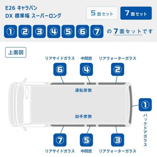 E26 キャラバン DX / EX スーパーロングボディ 標準幅 ウィンドウパネル 7面セット| スーパーロング 標準 NV350 日産 パネル シェード ボード 窓 カーテン 車中泊 プロダックス