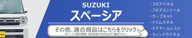 | 適合車種 | スズキ スペーシア ・スペーシア/スペーシアカスタム(2017年12月〜) ・スペーシアギア(2018年12月〜) 【MK94S】2023年(令和5年)11月〜 ・スペーシア G ・スペーシア X ・スペーシアカスタム GS ・スペーシアカスタム XS ・スペーシアギア XZ 【MK54S】2023年(令和5年)11月〜 ・スペーシアカスタム XS TURBO ・スペーシアギア XZ TURBO 【MK53S】2017年(平成29年)12月〜2023年(令和5年)11月 ・スペーシア ハイブリッドG ・スペーシア ハイブリッドX ・スペーシアカスタム ハイブリッドGS ・スペーシアカスタム ハイブリッドXS ・スペーシアカスタム ハイブリッドXS TURBO ・スペーシアギア ハイブリッドXZ ・スペーシアギア ハイブリッドXZ TURBO |