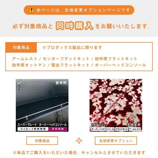 【オプション】 生地変更 | トラック 内装 カスタム パーツ アクセサリー オーバーヘッドコンソール フラットキット オットマン 寝台フラットキット アームレスト 生地張り 生地 雅 金華山 OP-FC