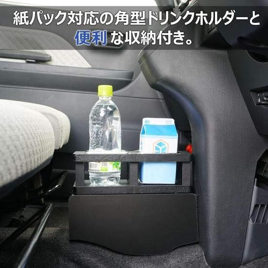 ポイント | 足元のデッドスペースを有効活用!ダイハツ タント専用設計フロアコンソール。 「こんな商品があったら・・・」その想いをカタチにしました。 上部を取り外すと、便利な収納スペースがあります。 高級感を感じていただきたい、こだわりの逸品。 紙パック対応の角型ドリンクホルダーと便利な収納付き。 ドリンクホルダーを外せは、シート可動域に制限なし! |