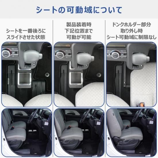 取付方法 | 1、作業スペースを確保するため、シートを後方へスライドさせます。 2、フロアコンソールの下段小物入れを、助手席足元から横に移動させて仮置きしてください。 3、製品と当たる前方部分をクリーナーなどで脱脂してください。 4、フロアコンソールを一旦取り外し、付属のマジックテープを貼り付けてください。 5、フロアコンソールを設置し、マジックテープの剥離紙を剥がして固定してください。6、フロアコンソールの上段ドリンクホルダー部分を取り付け、設置完了です。 詳しくは取付説明書をご確認ください。 |