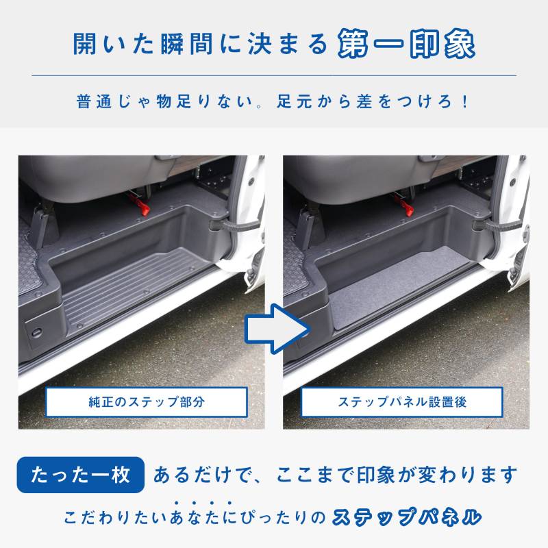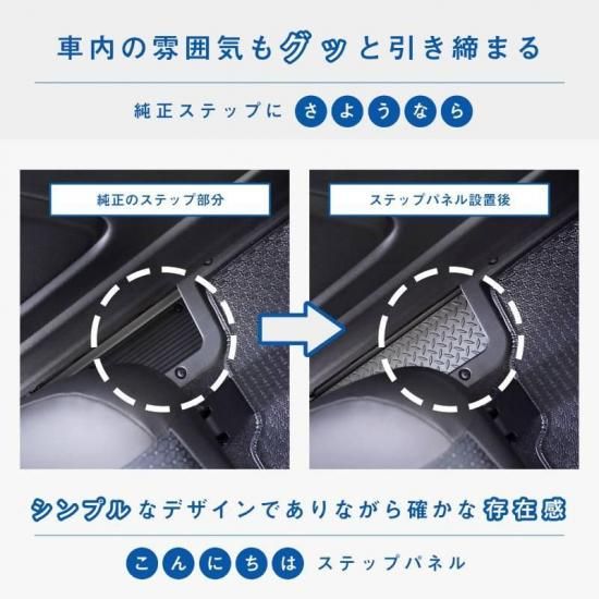 | ご注意 | ・圧着が不十分ですと接着が不十分になる恐れがあります。 貼り付け直後は接着力が弱く、十分な接着力が発揮されるまで24時間程度かかります。 ・本製品とプレミアムGX用は、パネル枚数が異なります。 プレミアムGX用ステップパネルは ⇒こちら ・安全にご使用していただくために、取り付け説明書を確認していただき、走行前に点検をお願いいたします。 |