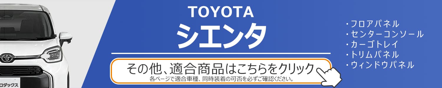 | 適合車種 | ■トヨタ 10系 15系 シエンタ 2022年[令4]8月〜現在 グレード: ・Z(ガソリン車・ハイブリッド車) ・G(ガソリン車・ハイブリッド車) ・X(ガソリン車・ハイブリッド車) ・JUNO |