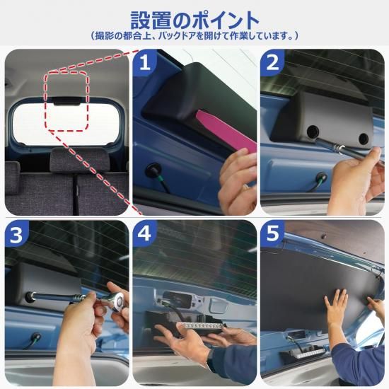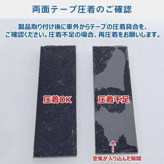 | 取付方法 | 1、ウィンドウパネルの取付位置を確認してください。 2、クリーナー等でガラス面とウィンドウパネルの汚れや油分を取り除いてください。 3、ウィンドウパネルに両面テープを貼り付けてください。 4、ウィンドウパネルを装着し十分に圧着させてください。 (詳しくは同封の取付説明書をご確認ください。) |